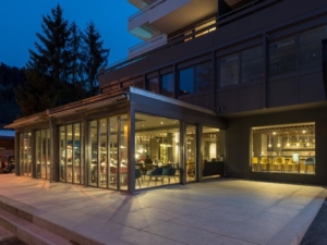 Familiengeführtes 4*Hotel im alpinen Chalet-Stil direkt an der Talstation Laax mit Restaurant, Bar, Lounge, Fonduestall und Hallenbad.